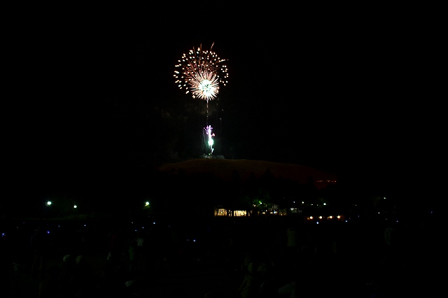 山焼き前に花火が上がるのでそれを先に撮ろうと、アマカメさん達が三脚を立てて構える中、